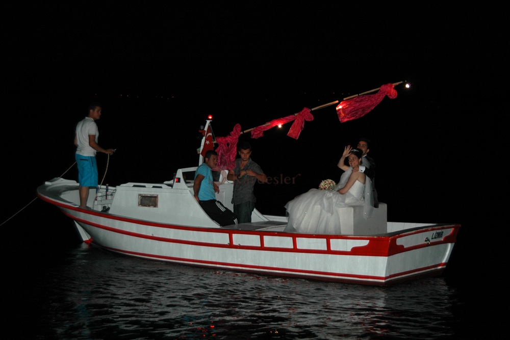 Gelin ve Damadın Denizden Tekneyle Gelişi, Oryantal, Havai Fişek.
