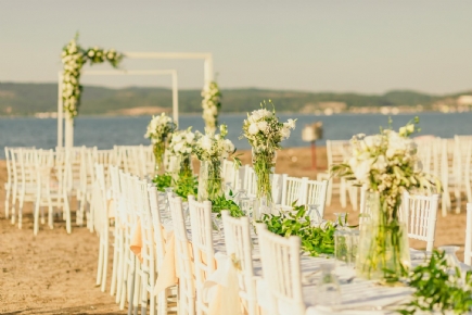 Plaj (Kumsal) düğünü organizasyonu konuklarınız ve sizin için oldukça rahatlatıcı ve unutulmaz bir düğün olacaktır. Düğününüzün eğlenceli ve romantik bir 'ege havası' tadında geçeceğinden ve rüyalarınızı gerçekleştirebileceğinizden emin olabilirsiniz.